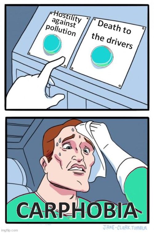 "Hostility towards car pollution, car drivers."