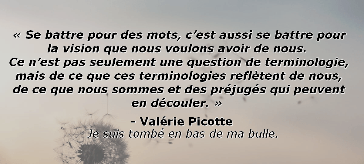 Les Français ont déjà réussi à remplacer les francs par l’euro, et même le minitel par l’ordinateur. Qu’est-ce qui pourrait empêcher la France de retrouver d’anciens mots français, qui plus est adaptés à l’international ? La France pourrait ainsi élargir son vocabulaire, retrouver ses mots, et se conformer au respect de la diversité. Une nouvelle façon de penser la santé émerge, il est donc normal de la faire suivre par un changement de vocabulaire. Mais tant que cela ne sera pas officiel, les confusions et les maltraitances qui en découlent persisteront.